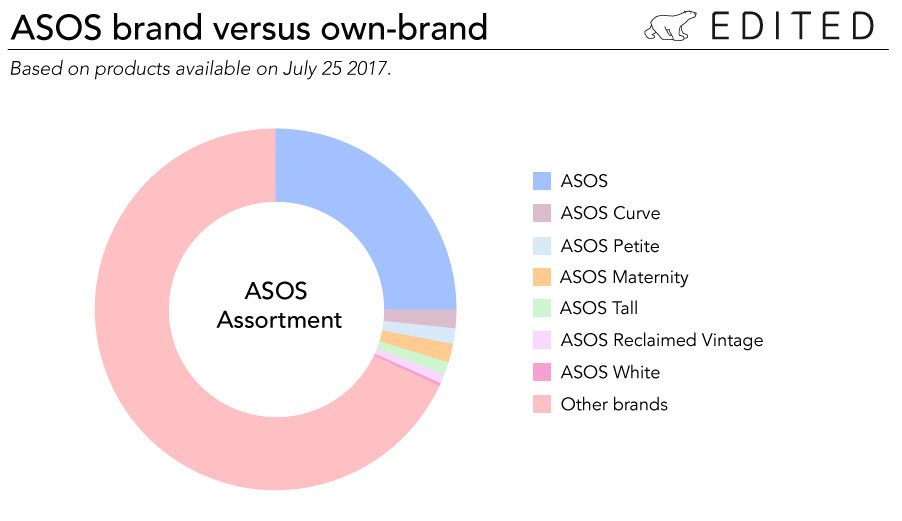 ASOS的真正王牌是自有品牌分類的操作,不論是身材嬌小或高大,青春個性或時尚孕婦,以及重新設計的複古風,ASOS全面覆蓋消費者的需求面。 其中有三分之一是自有品牌,其大部分品牌屬於ASOS系列。由於品牌策略已將重點放在獨特的產品價格上,其他零售品牌業務使ASOS具有價格競爭力的空間。