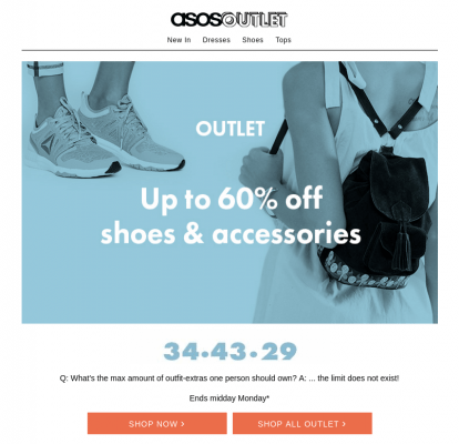 ASOS在折扣方面有很強的主導方式,一開始會對商品進行有效與準確的分類,放對區域,才能讓品牌零售商得到最佳的露出與促銷。促銷折扣主要在6月和12月,以電子報和折扣代碼提供給消費者。