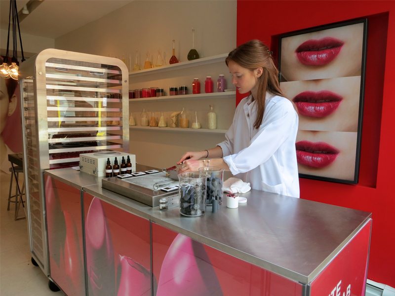 Bite Beauty是加拿大美妝品牌,只賣唇部產品,最近在美國加州新開了一個 Lip Lab。在這個像沙龍一樣的店裡,你可以親自動手調製自己心目中的口紅,包括選擇口紅的顏色、質地、香味。並且你能全程觀摩口紅的製作,然後現場取貨。更有趣的是,Bite Beauty 可以記錄下你創造的“配方”,給你頒發證書。