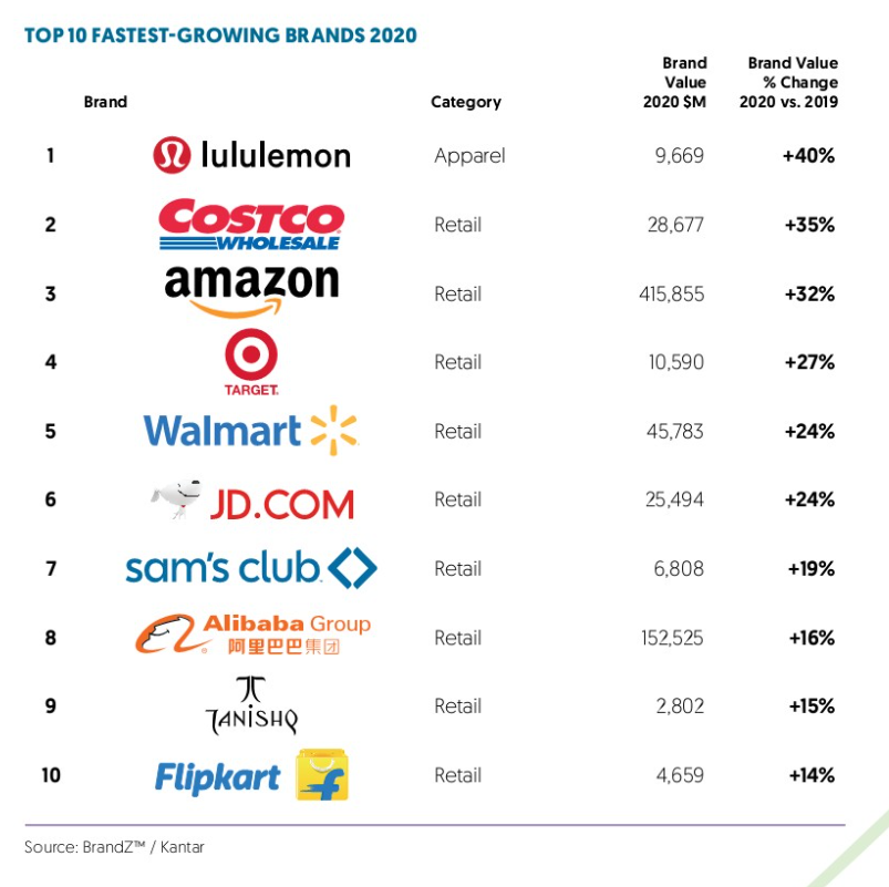 附錄:2020年BrandZ 全球最有價值75大零售品牌完全榜單 (原文下載)