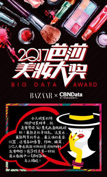 CBNData x 時尚芭莎《2017芭莎美妝大獎線上美妝消費大數據榜單》依據護膚篇、彩妝篇和特殊護理篇依次揭曉。