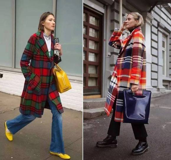 比如說以橘色、黃色格子為主的搭配就十分搶眼。少了以往格子款的優雅和深沉,反而增添了活潑感,與冬季肅穆的環境正好相反。