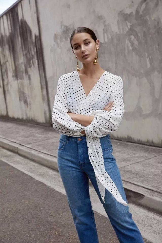 要說最好駕馭的還屬波點襯衫,既有職場女性的那份利落感,同時還透露着幾分優雅俏皮feel,加上寬框墨鏡以及誇張的首飾點綴,輕輕鬆鬆穿出年代感。