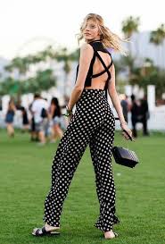 波點闊腿褲配了一件露背的小弔帶,休閒慵懶還帶點性感,哈哈,一褲子的波點也是夠顯眼,復古之餘不失俏皮,總之就是很顯靈氣的。