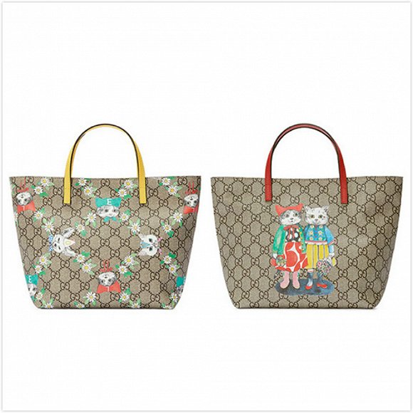 最新藝術家系列是和日本插畫藝術家樋口裕子(Higuchi Yuko) 合作的童裝及包袋系列。樋口裕子是日本近年來倍受品牌青睞的幾位藝術家之一,和多個日本知名品牌都有過合作,她的作品中常見一隻擬人化的貓,此次和Gucci合作的童裝及包袋系列即以貓為主題。