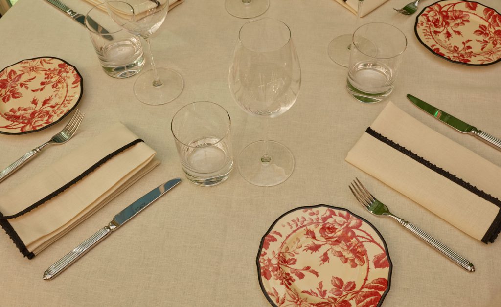 比起精品店和展覽,最令人感到意外的是Alessandro Michele這次將觸角伸到了美食界。為了更全面地讓參觀者體會到Gucci Garden的精髓,Gucci在一樓特別開設了名為Gucci Osteria的餐廳,並邀請米其林三星的義大利廚師Massimo Bottura擔任主廚,共設有50個座位,所有餐具均來自於Gucci Décor。