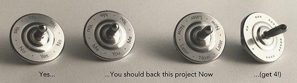 這個一組4件的陀螺組合,可以幫選擇恐懼症做出選擇。不管是“是你還是我”,還是“是或否”,又或者“現在還是再等等”,還有超過兩個選擇的問題,都可以通過轉陀螺來找答案。