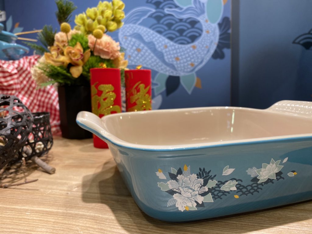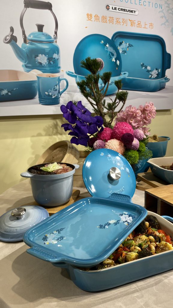 LE CREUSET推出「雙魚戲荷系列限定新作」,以加勒比海藍為主色系,純手工的貼花圖騰,設計構想來自於代表東方文化中吉祥寓意的鯉魚和荷花,「雙魚戲荷系列限定新作」全系列包含媽咪鍋、方形烤盤、長形烤盤、和馬克杯等。運用LE CREUSET鍋具烹調健康美味的年菜料理,在新春團聚時刻,大家一起防疫在家圍爐,也能夠感受到幸福洋溢的團圓滋味。