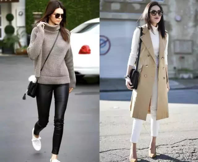 長馬甲不只帶有時尚感,而且還能顯瘦,修飾身型。左右兩張圖同樣是針織衫搭配褲裝,單穿針織衫容易顯得臃腫,而有了長馬甲的加持,無論是身材氣質都有了明顯提升。