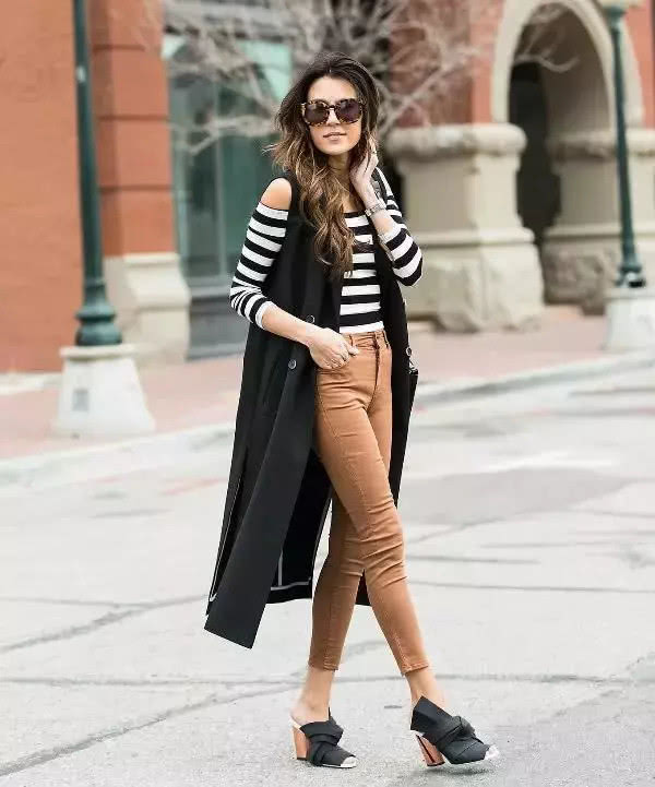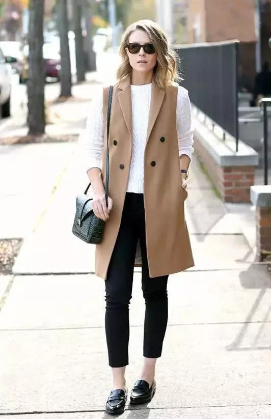 或是膝蓋以下的長款長馬甲,搭配長靴,顯瘦又能盡情秀出大長腿。