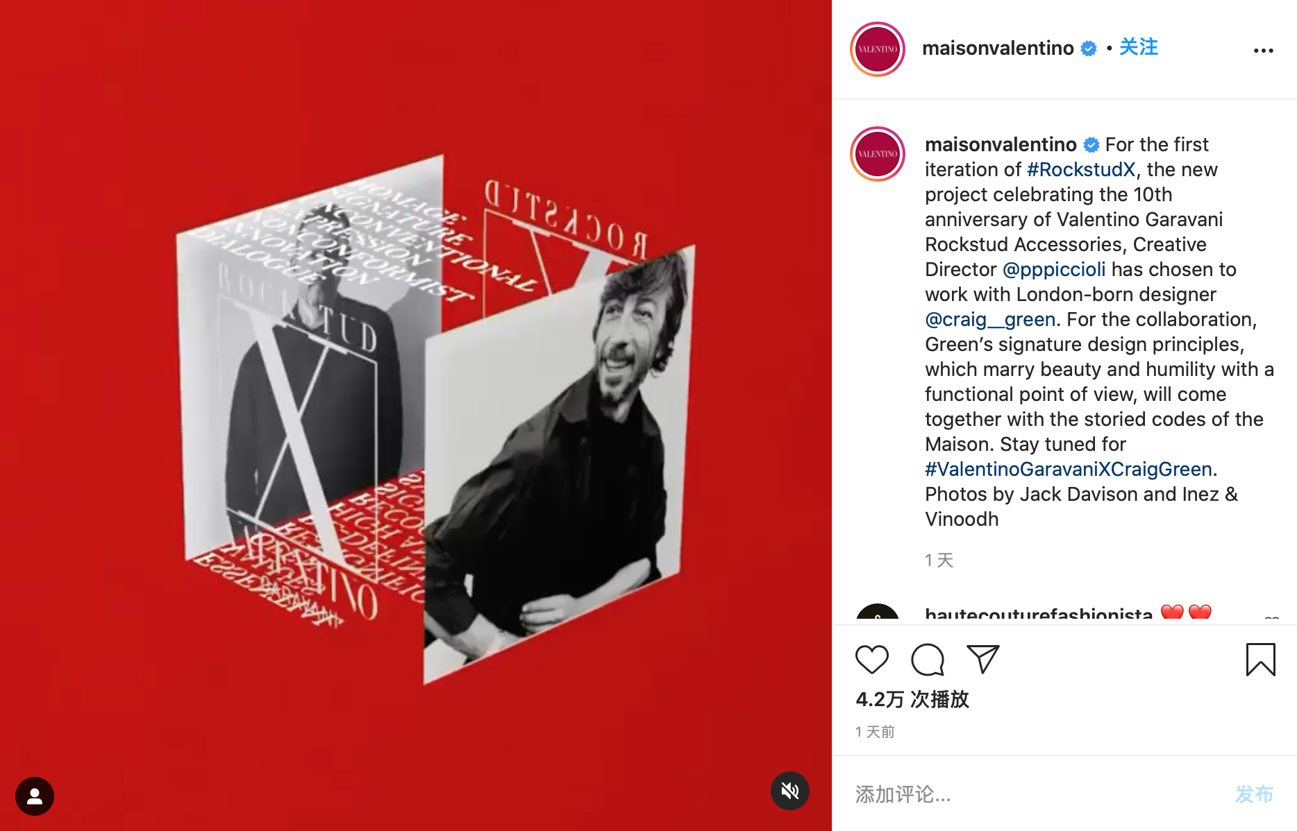適逢經典的Rockstud 鉚釘鞋系列推出十週年,品牌推出了Valentino Garavani Rockstud X 特別項目,Pierpaolo Piccioli 會邀請國際設計師、品牌和藝術家,利用鉚釘這一元素創作包袋和鞋履。首個合作對象則是英國男裝設計師Craig Green。