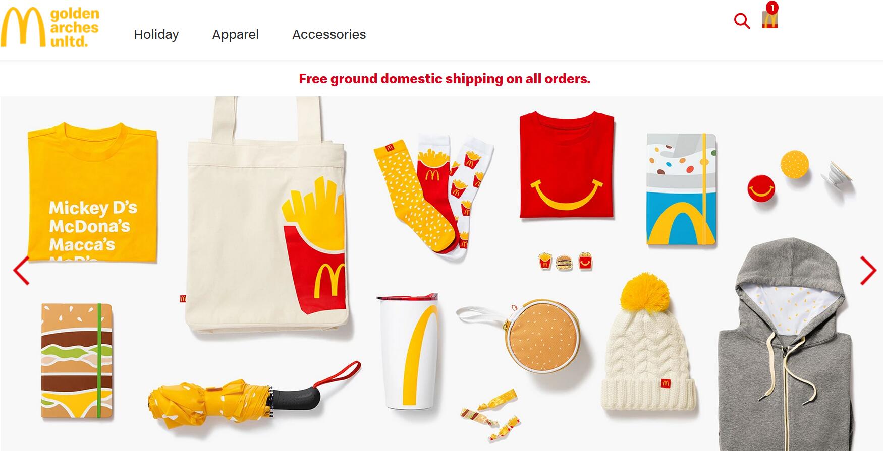 麥當勞自家品牌時尚以麥當勞快餐文化為主題,以其經典紅黃配色、金拱門logo以及開心樂園餐等元素為特色,包括了假日系列,服裝系列以及配飾系列,如假日針織長袖、T卹、連帽衫、托特包、雨傘、Big Mac包、水杯等等,價格從10到65美元不等,通過同期上線的網店“ Golden Arches Unlimited(金拱門無限)”銷售。目前,多款產品已經售罄,但是麥當勞表示將定期更新庫存。