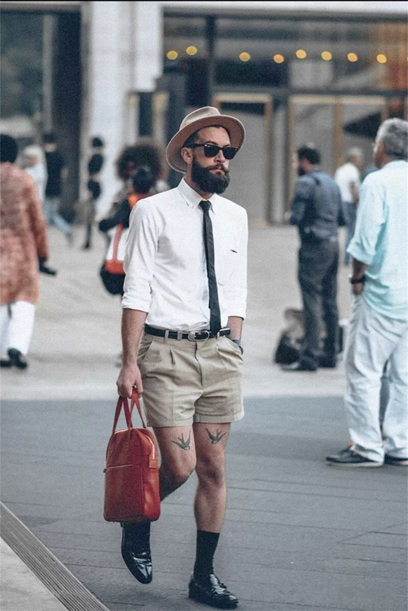不得不說,男士短褲的流行確實符合近年來時裝界期望的「模糊高級時裝、運動裝、休閒裝甚至服裝性別」的趨勢,也給男士帶來了更多的穿衣自由和選擇。但是,是不是所有人都能夠接受一個穿著西裝的男士夾著皮包、穿著皮鞋卻穿著超短褲露著“美腿”的商務男士,或者說這樣的穿著是否真的能夠出現在一些正式場合,還需要多加商確。