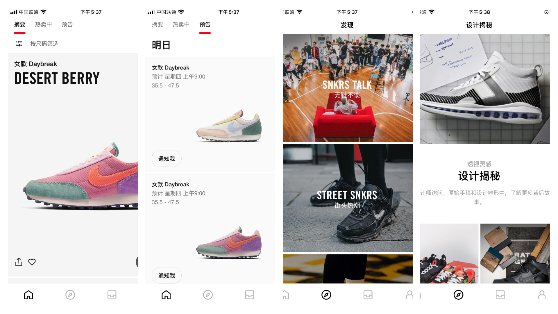 如果你是潮鞋愛好者,你對這個app一定不陌生,SNKRS是Nike球鞋電商平台,也是Nike限量運動鞋的主要抽籤發售平台,提供有關Nike 經典款和最新款運動鞋背後的故事,並引入drop 上新抽獎、線上訂貨,店內取貨等功能,滿足消費者對於潮鞋的需求。