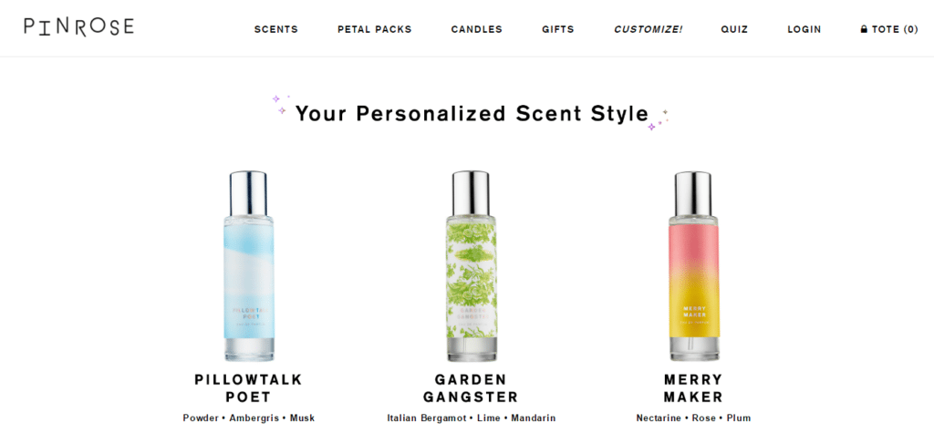 另一家名為 Pinrose 的香水初創公司設計了另一套測試題,不是根據顧客對理想香型的描述、而是根據顧客性格來推薦他們可能喜歡的香型。