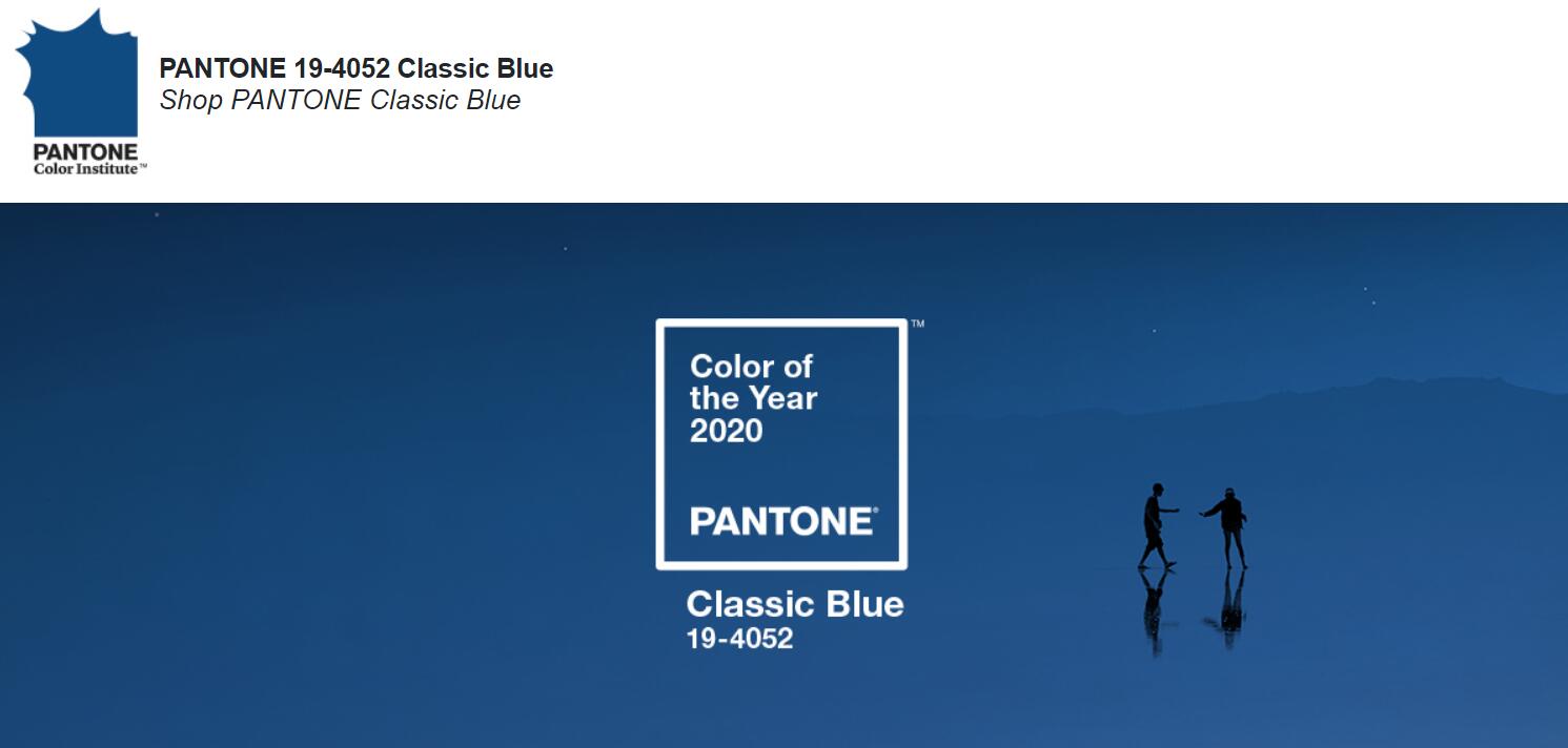 國際色彩權威機構Pantone 公佈了2020年的年度流行色,代碼為 19-4502 的Classic Blue(經典藍)。 Pantone表示,這種顏色“ 象徵著保護、穩定、和平和自信,同時也鼓勵深思、正念(mindfulness)和交流 ”。