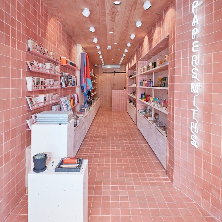 雖說千禧粉風潮慢慢退溫,但是粉紅色仍是大多數人浪漫、柔情,甚至是獨立的代表。 位於倫敦一家獨立設計文具店Papersmiths就大膽地採用粉色包裹整個店面,呈現與眾不同的風格。