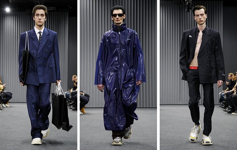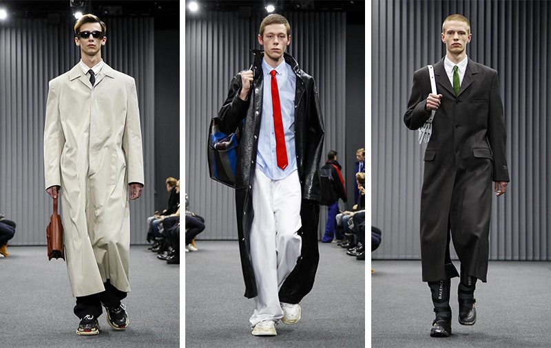 這是 Demna Gvasalia 加入 Balenciaga 後帶來的第二個男裝系列,設計團隊為此特地進駐開雲集團總部辦公大樓,於是就有了這麼一季為辦公室一族打造的“新造型”。與 Dior Homme 的 Kris Van Assche 相似,Demna 也選擇嘗試改造正裝。向來喜歡使用 logo 元素的設計師將開雲集團的標誌也貼到了衛衣、大衣背面甚至指甲上,Demna 說這一決定並沒有徵求集團的意見,並認為很有可能他們會反對這一做法,這樣的“叛逆”反倒是更符合他的一貫作風咯。