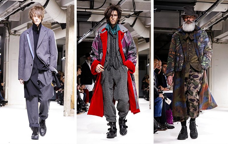 秀場的模特也有看點,他們的年齡、氣質都相當多元,這一方面是山本耀司的特色,另一方面他本季的繆斯本就是一個組成多元的群體。雖然說這並非嚴格意義上的街頭,即便個別造型可能會讓你聯想到流浪漢。但換一個思路,山本耀司在這一季打破界限將本來與高級時裝分屬於兩個維度的風格引入,而這種融合同街頭與高級時裝的融合是相似的,他們都更關注普通人,並試圖打造更“真實”的服裝。