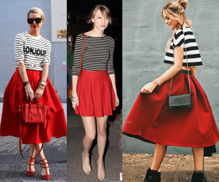 大紅搭配百搭的條紋,有種甜美的小清新,兩個百搭元素碰撞到一起自然不出錯哦~