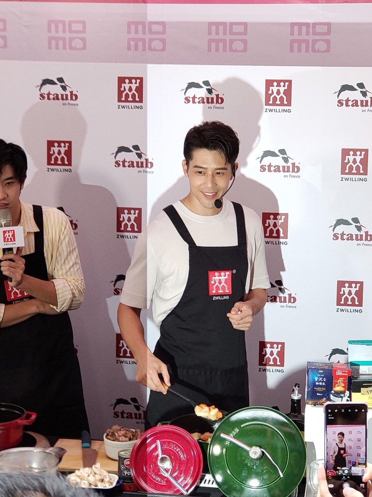 德國雙人邀請了全能男神胡宇威擔任雙11活動嘉賓,今日於台北市信義區香堤大道出席momo購物網雙11快閃活動,胡宇威不僅在運動節目表現亮眼,私下更是廚藝達人。胡宇威在活動現場使用德國雙人廚具以型男主廚架勢下廚做拿手的料理「鮭魚義式海鮮燉飯」、「紅酒燉牛肉」,舉手投足之間輕巧熟練,展現螢光幕上形象陽光,螢光幕下廚藝精湛大方的一面,型男主廚一出手也讓現場粉絲大飽眼福,增添電商會場買氣人氣。