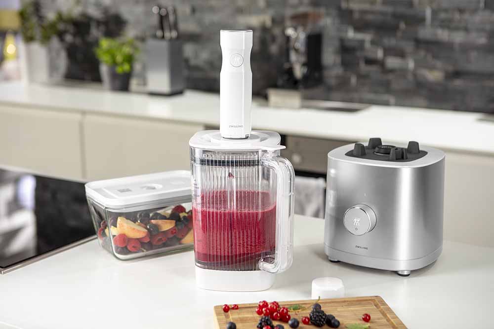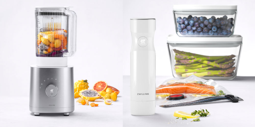 雙人牌智能家電的重頭戲為「ZWILLING ENFINIGY鈦銀系列破壁調理機」,採用高轉速電機原理,對食材進行高速切割粉碎,瞬間擊破蔬果細胞壁,將細胞中維生素、礦物質、植化素,蛋白質及水分充分釋放,口感更細膩,更利於人體吸收。