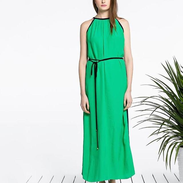綠色清新自然,腰部收的恰到好處,展示出纖細腰身和修長比例,顯得知性又迷人,配黑色平底鞋性感大氣,氣質盡顯。