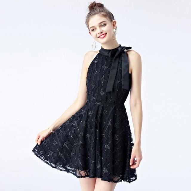 黑色的珠片設計,帶著一種知性的高貴,透著成熟的優雅魅力,。對於矮個子女孩來說,這款裙擺長度在膝蓋以上的才是矮個女的本命,盡力把美腿露出來,那樣視覺上更顯高!