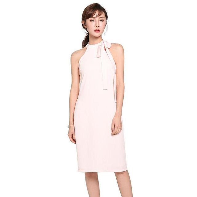 粉色可以顯示女性端莊優雅的氣質,修身的款式又可以擺脫刻板,讓你在派對上更加討喜!掛脖的點綴能使你顯得活潑又有青春活力!