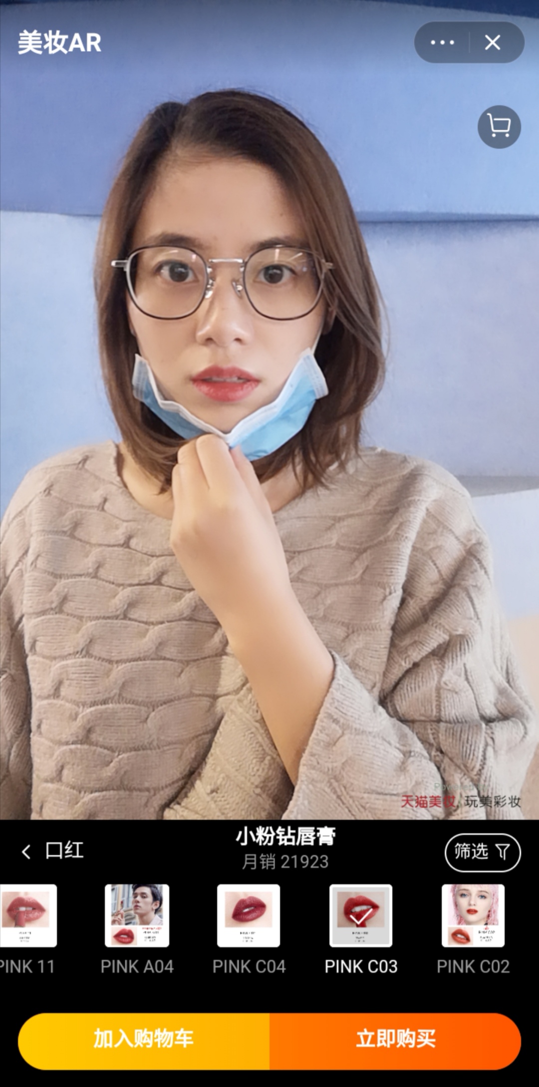 用戶使用完美日記天貓旗艦店在線試妝購物小程序挑選口紅色號