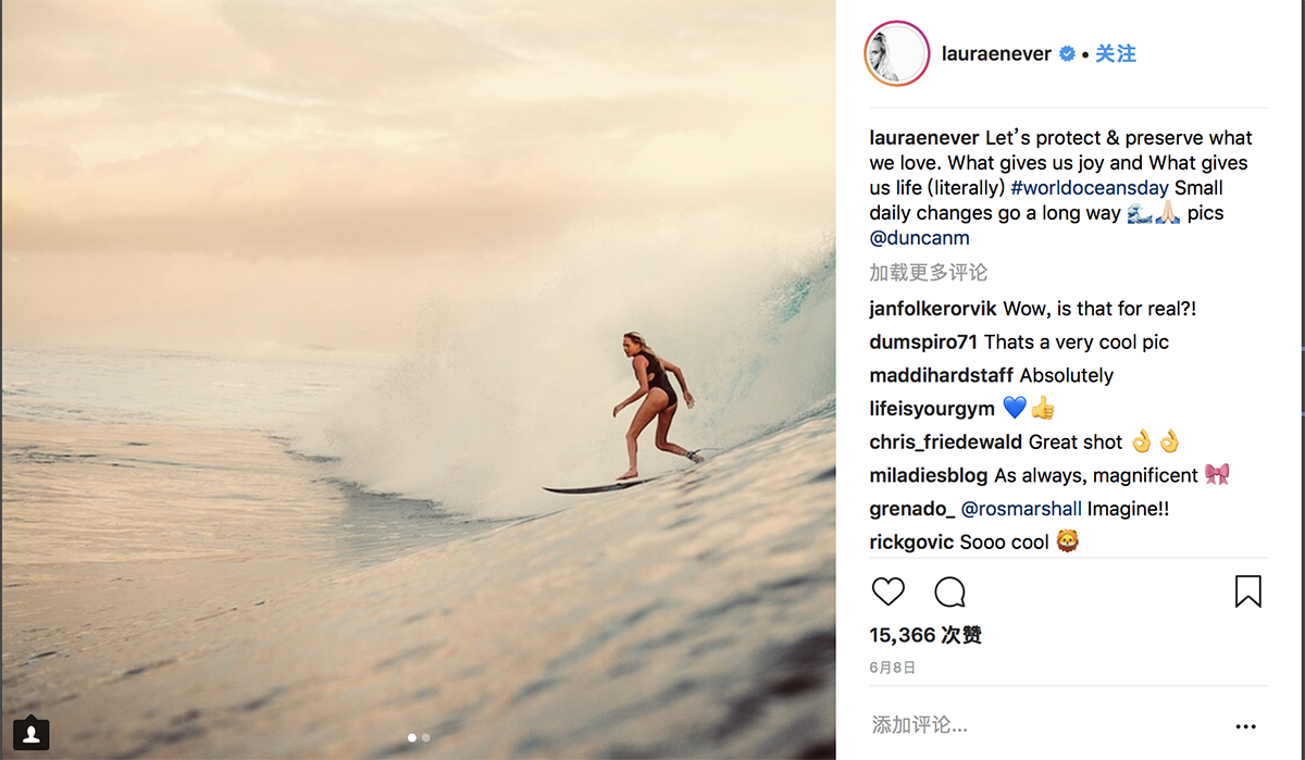 報告中還提到,雖然像 Zayn Malik、The Weeknd 和 Ansel Elgort 等千禧一代名人為所支持的品牌貼文的總點讚量最高,但真正引爆社交媒體的是 Laura Enever、Kelly Slater 等專業衝浪運動員意見領袖,他們在社交媒體上的貼文獲得點讚量是 Kanye West 的10倍以上。