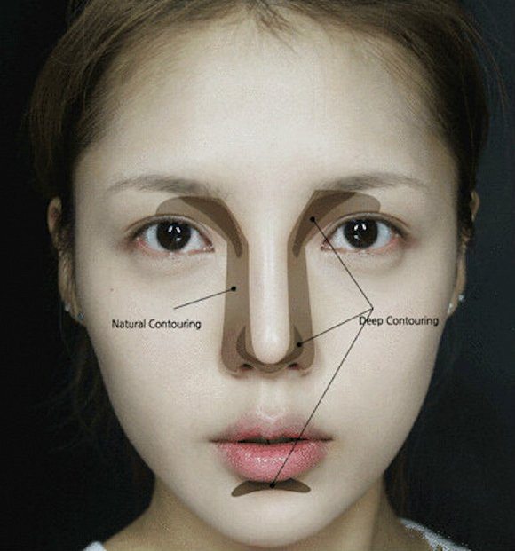 不過一味追求自拍時可以有一個仿佛打了十管玻尿酸的鼻子而大面積的重掃鼻影,只會讓人看來沒有洗乾淨臉的樣子。參考韓國美妝博主Pony的畫法只需要在深棕色區域進行加重,其他鼻側部分用陰影粉輕輕帶過,自然立體的鼻子即可呈現。