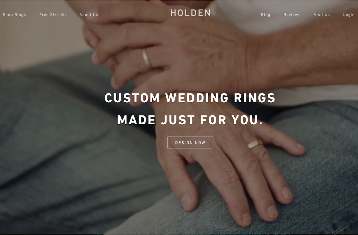 創立於2018年,Holden 的誕生與線上直銷這一商業模式的興起緊密相關——直銷除了改變消費者的購物習慣,還讓定製化有了更多的可能。用戶能在 Holden 提供的十款戒指輪廓中選擇一款,再選擇寬度和金屬質地、尺寸。Holden 所有的鑽石都是經過無衝突認證的人工合成鑽石,部分戒指提供刻字服務。經典10K黃金素戒最便宜為179美元,最貴的鉑金鑽戒售價1499美元,整個生產製作流程耗時兩週。