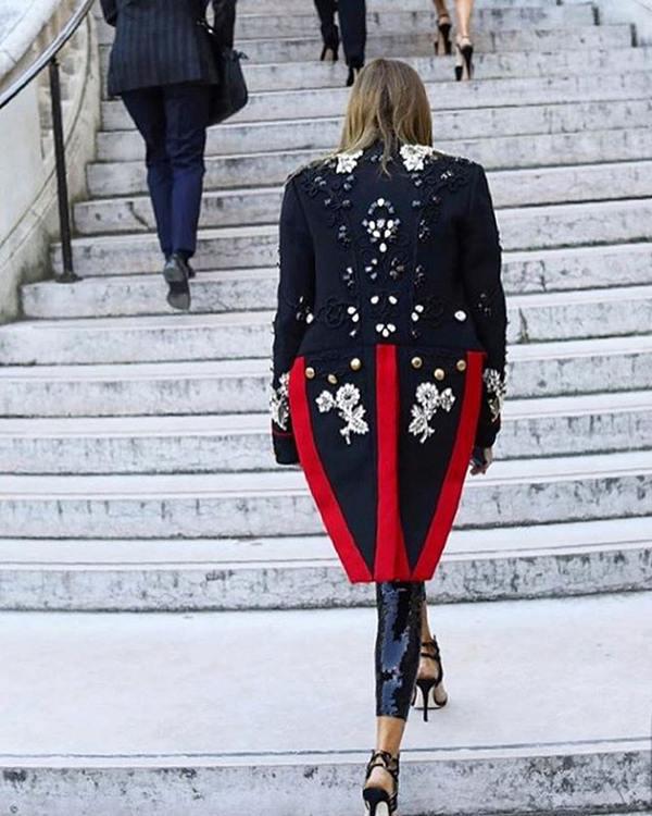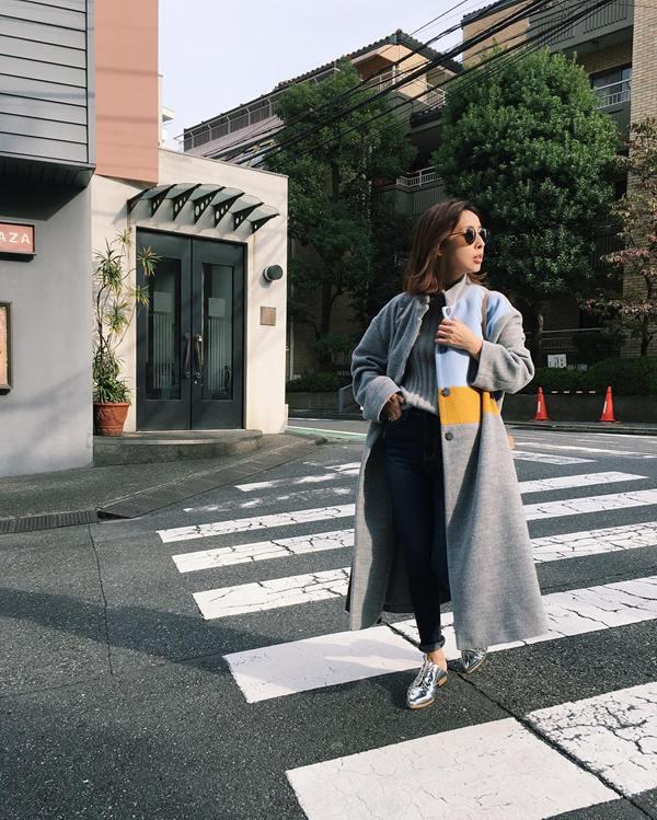 一般長大衣會有很多扣子,但只能扣第一顆,因為第一顆扣子能夠保證大衣不在寒風中被吹得失去了原本的廓形,又能在走路時恰到好處的露出大長腿,有若隱若現的美感。
