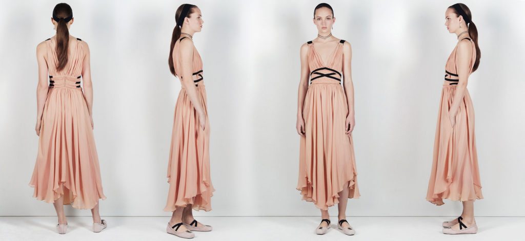 此次系列中將許多芭蕾舞元素融入日常服裝中,像是綁帶、蝴蝶結、雪紡飄逸材質還有精緻的芭蕾舞刺繡等等,看起來都非常有女人味。