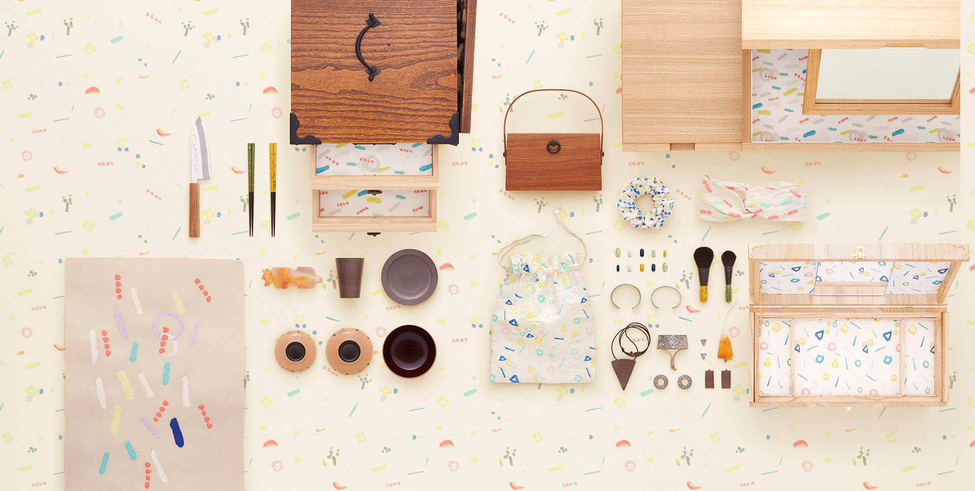 BEAMS JAPAN經理鈴木修司表示:“福井是一塊自然資源豐富的土地。我們邀請能連玲奈以自然的五大要素’土、火、水、空、風’為主題創作繪畫,並將繪畫元素融入商品的花紋、形狀、包裝等設計中。”