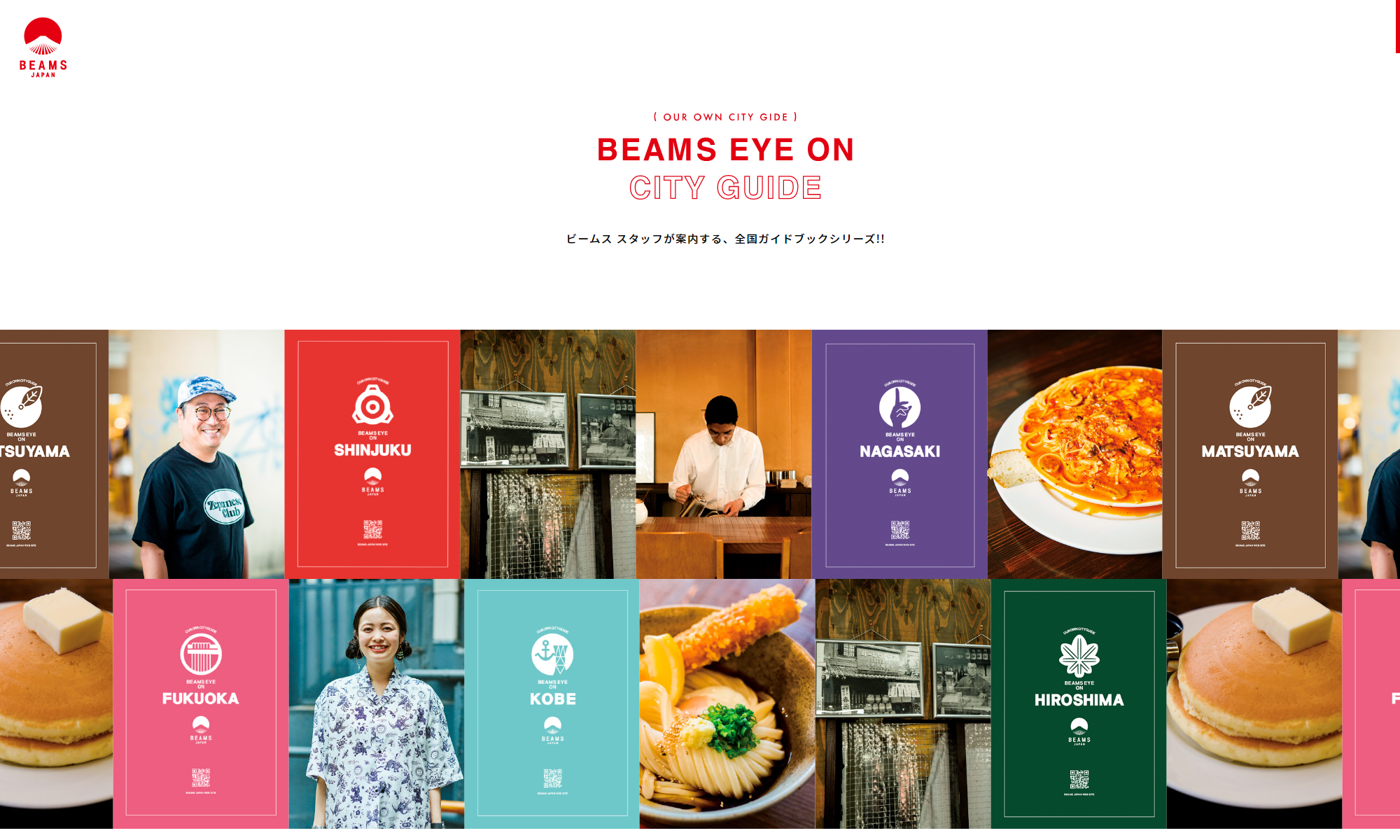 BEAMS 在全國各地都有門店,各個門店的員工在當地長期生活,同當地文化有著密切的接觸。由此衍生出BEAMS EYE ON CITY GUIDE 項目——將各地員工們推薦的景點和不可錯過的名店等訊息總結成冊,為顧客提供城市觀光指南。
