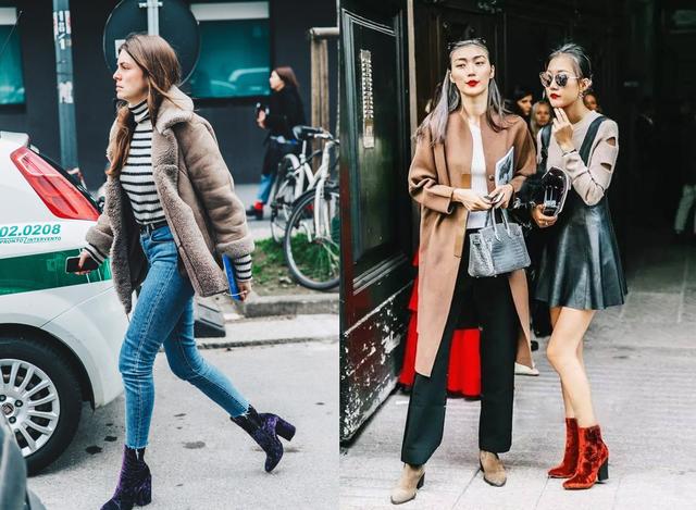 絲絨在去年很火,今年也不例外,很多服飾上都加上了一些絲絨的元素。當然絲絨的短靴也是復古風十足,啞光的視覺感,即使再明亮的顏色也會讓它多一絲奢華。