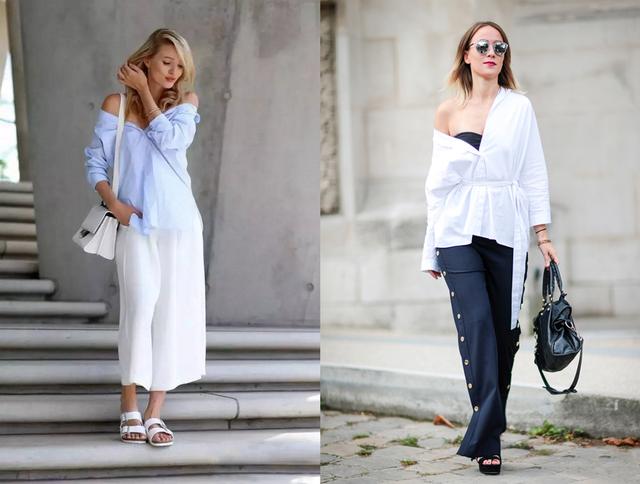 衣服穿得整整齊齊,有沒有想過變一下呢?有時嘗試不同的穿法,也會有不同的韻味哦。襯衣露出肩膀的街拍就是衣服不好好穿的示範,微微的露出人體最性感的鎖骨,不知道有多迷人了,體現了放蕩不羈的生活態度,有時候生活多一點樂趣也是不錯的哦~