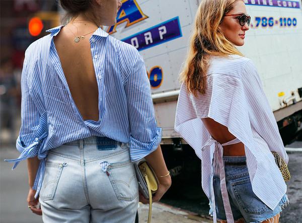 襯衣反穿是從T台上的模特流傳下來的,漸漸被時尚的潮人們所展現出來。襯衫反穿的方法給了襯衫一種新的美感,露出美背的設計也會sexy十足啊,搭配牛仔褲,簡單利落。