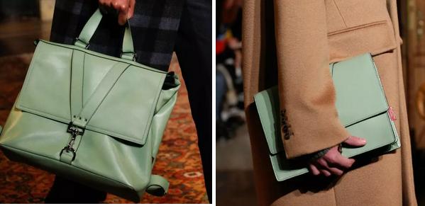 包袋整體以湖水藍\綠為主色調,男裝秀場的包包也是這個色調,看著很舒服。