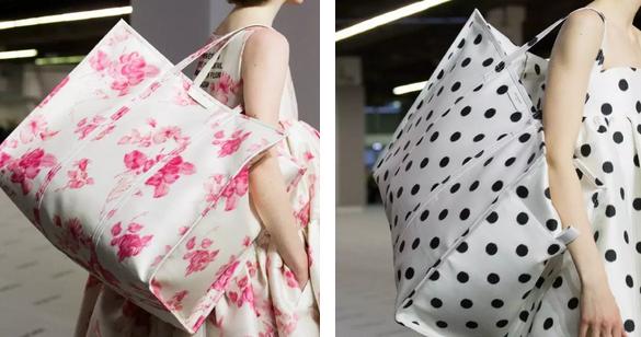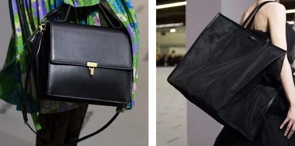Balenciaga跟Loewe走著相似的套路,同色系和大包,整場都能看到品牌最拿手的黑灰色系,和喪心病狂的「春運被套包」。