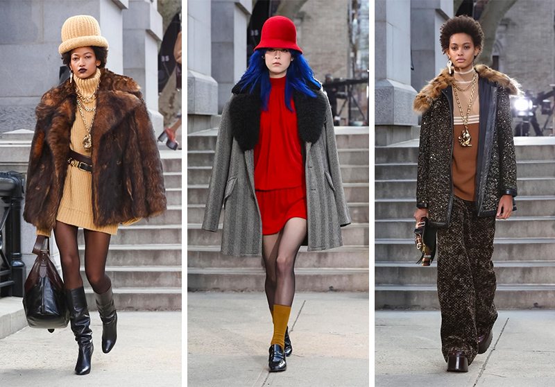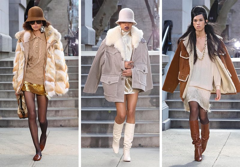 在公園大道的軍械庫,Marc Jacobs 展示了復古嘻哈的一季作品。設計師以 70、80 年代紐約街頭嘻哈女孩為繆斯,皮草、亮片、燈芯絨、闊腿褲、迷你裙,整個系列極富年代感,但同時又非常實穿。這和我們腦海中的 Marc Jacobs 存在明顯的差異,但小馬哥在信中說,這一代年輕人的風格永遠都是年輕街頭文化的基石。