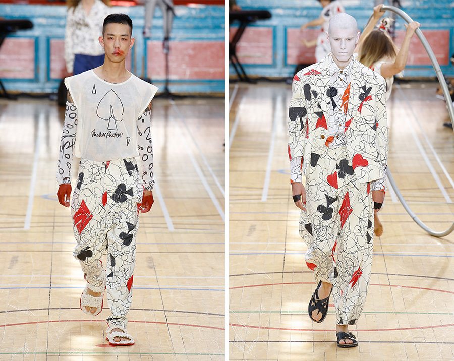 相對而言 Charles Jeffrey Loverboy 的抽象藝術風格印花針織衫,就屬於低調版本的代表了,雖然秀場上搭配內褲、裙子的造型以及妝容、頭飾都不是普通人的調性,但單品本身倒很實穿。