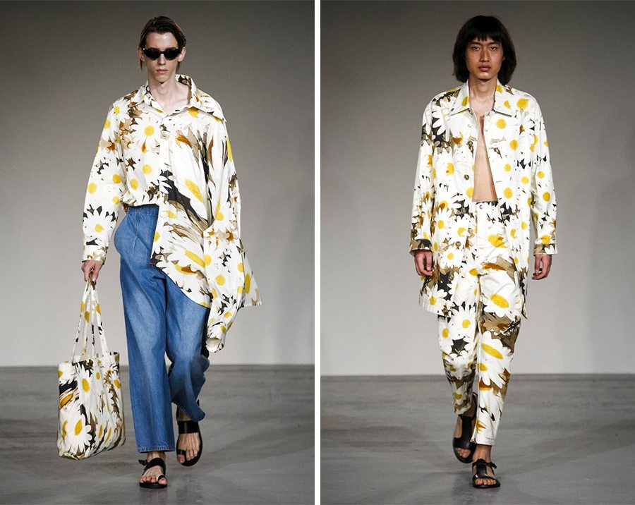 具象的手繪植物印花又來了,而且是大面積地襲來。單品通體覆蓋還不夠,全身的造型都被印花承包。Alex Mullins 雛菊印花襯衫和套裝打造出中性風格的造型。