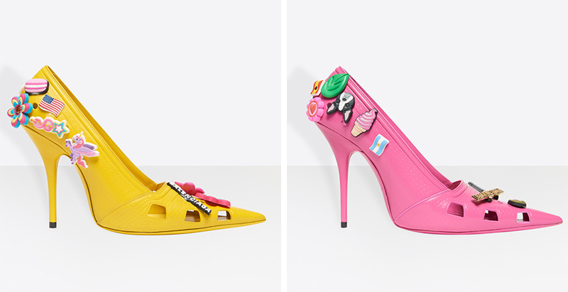 為了丟掉時尚黑洞的名號,洞洞鞋品牌 crocs 真的很努力,此前與 Christopher Kane 聯名,這一次更是拉攏了大勢的 BALENCIAGA。Demna Gvasalia 將洞洞鞋變身松糕鞋和細高跟鞋,給這個系列取名為 FOAM,鞋面上點綴了包括品牌 logo、國旗、花朵等立體圖案,秀場上搭配具有反差的裙裝造型。