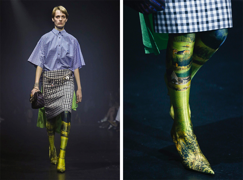 除了吸睛但不討好的這對聯名,BALENCIAGA 秀場上自家的鞋靴倒是好看不少。設計師繼續玩鞋襪一體的設計,這一次藝術品印花、貨幣印花、閃光面料的設計都格外出挑,對於喜歡玩搭配的同學來說,這些靴子無疑是讓人心跳加速的。