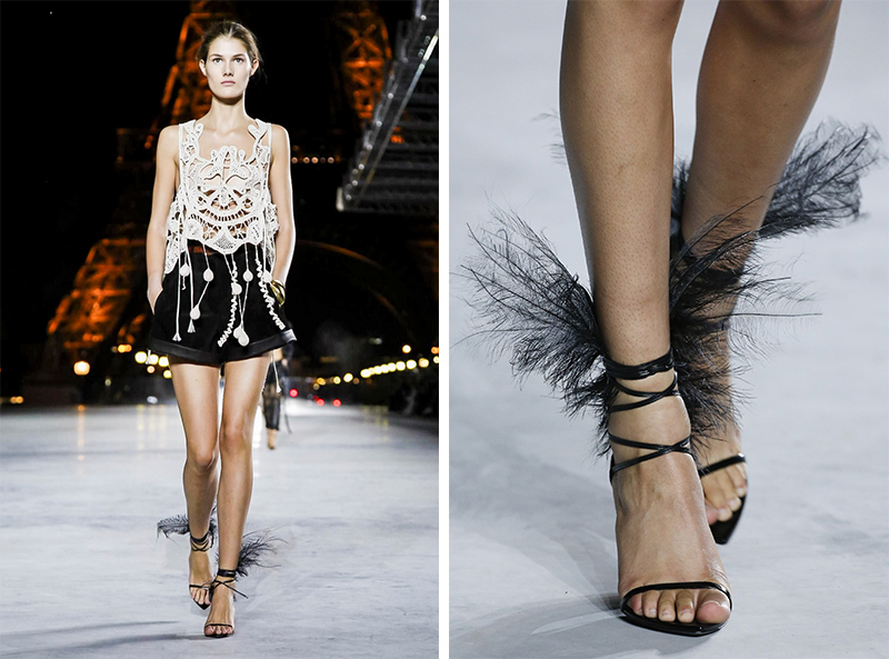 Saint Laurent 在埃菲爾鐵塔之下帶來了 2018 春夏系列,Anthony Vaccarello 從品牌歷史庫中復活了多款廓形,整個系列驚豔到將人們的注意力牢牢鎖在服裝之上,幾乎不會關注到配飾。