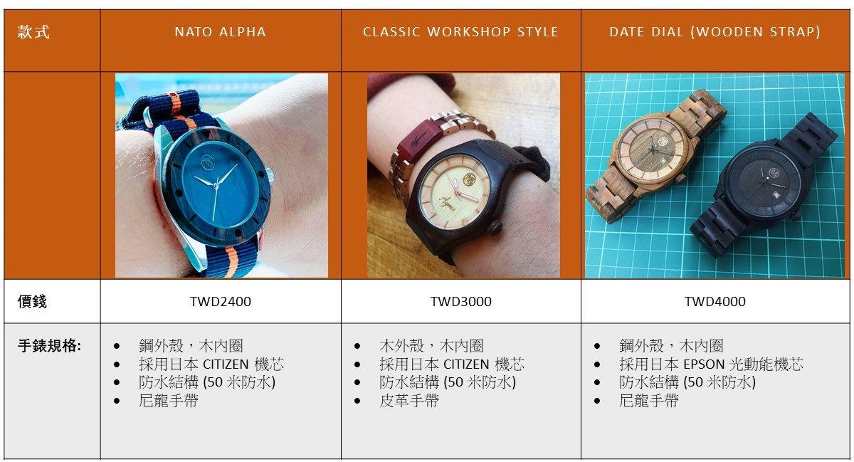 木表 Woodwatchhk 於 2017 年在Kickstarter 眾籌成功,以回收木材製作個性化手錶。”木表”以木的部首代替”錶”的金字部分, 象征堅持以環保的回收木材製作手錶。現在更開始舉辦工作坊讓多些人了解和親手製作一隻獨特的”木表”。
