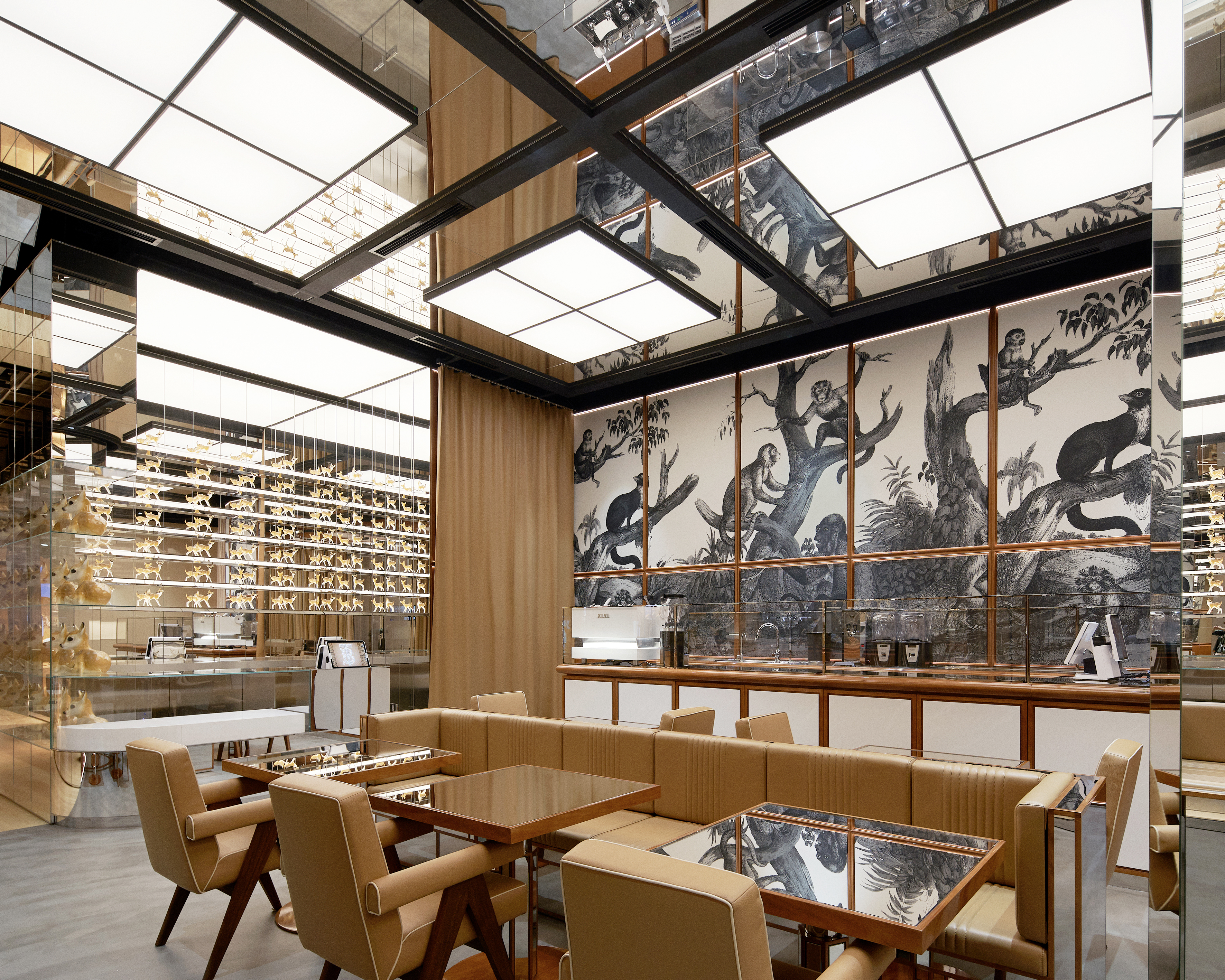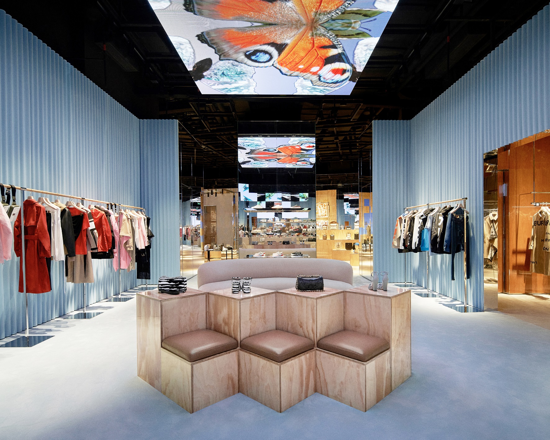 Burberry空·間 門店通過10個不同的空間,重點打造了包括:互動式櫥窗、多主題試衣間、沉浸式互動投影體驗空間、“風衣世界”等主題區。滿牆精靈小鹿圍繞的亞洲第一家咖啡店Thomas Café 也在此開設。